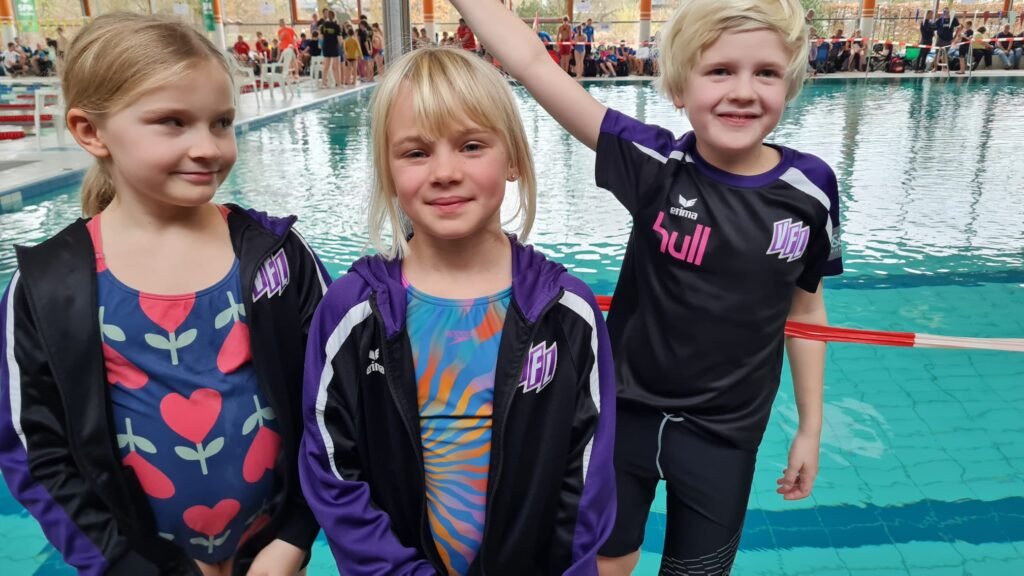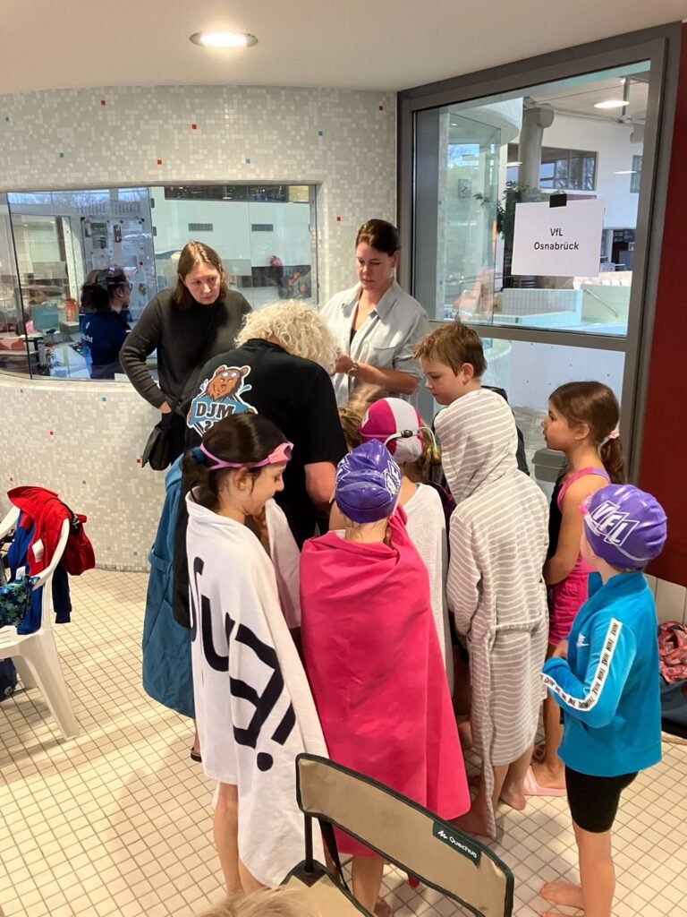 Weit mussten die VfL-Schwimmer*innen an diesem Wochenende nicht reisen, denn einer der schönsten Wettkämpfe der Saison findet direkt im heimischen Wasser satt. Viele bereits wettkampferfahrenere Schwimmer*innen werden sich vielleicht etwas wehmütig daran erinnern, hier vor einigen Jahren ihr Wettkampf Debüt gegeben zu haben. Und so ging es auch Otto Kopatz und Sophia Mönkediek aus dem Jahrgang 2019. Sie waren der jüngste Starter und die jüngste Starterin im gesamten Teilnehmerfeld und haben einen großartigen Job gemacht. Ebenso wie die Teamkolleg*innen aus den Seesterngruppen sowie aus der GA: Fritz Kopatz, Leon Jim Mummelthey¸ Vera Deyerling, Maria Alfa, Mira Sophie Bergles, Yasmin Alfa, Mailina Klein, Jantje Havermann, Ben Brand, Johannes Mönkediek, Noel Rakow, Liem Vincent Jeyaras, Oskar Lemke, Paula Funke, Finnja Fechtner, Annelie Bluschke , Lara Nicolai, Emma Winter, Marlene Bockhorn, Jonna Mendrina , Marla Menninghaus, Lucia-Fee Sandfort und Leni Janssen. Luisa Heckel und Li Na Hellmann konnten krankheitsbeding leider nicht mitschwimmen. Wir sende schnelle Genesungswünsche!