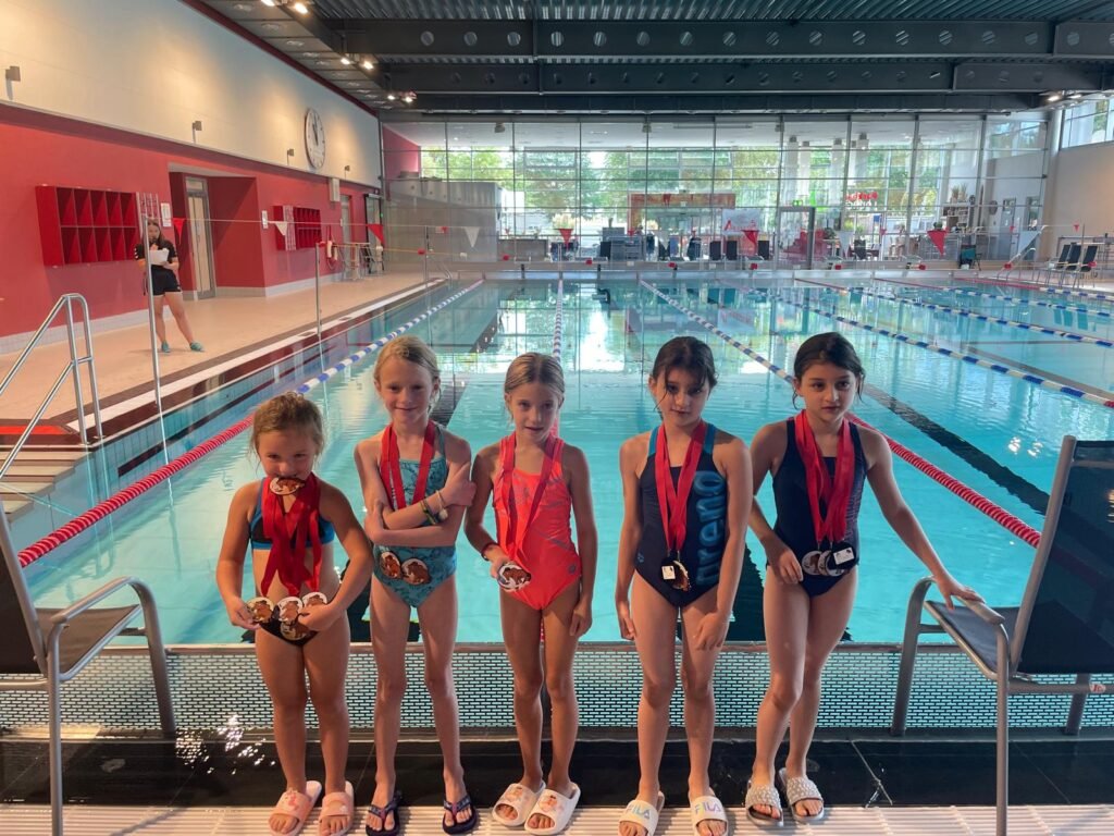 Das erste Septemberwochenende stand im Zeichen der Wettkämpfe. Den Anfang machten am Samstagvormittag die jüngsten Nachwuchsschwimmer*innen der GA, die in Ahlen zu Gast waren. Geschwommen werden konnte in acht kindgerechten Wettkampformaten: 25m R-Beine, 25m B-Beine, 25m K-Beine, 25m Altdeutsch-Rückenschwimmen, 25m Kombi-Übung (Br-Arme + Kr-Beine), 25m Kraul mit 1 Rolle, 25m Freistil, und 50m Freistil. Dabei haben sich die fünf teilnehmenden VfL-Schwimmer*innen Vera Deyerling (Jg. 2018), Mailina Klein (Jg. 2017), Yasmin Alfa und Maria Alfa (beide Jg. 2017), für die es der erste Schwimmwettkampf überhaupt war, sowie Mira Sophie Bergles (Jg. 2017) ganz hervorragend präsentiert. Sich zu trauen, vor großem Publikum in einem nicht vertrauten Schwimmbad ins Wasser zu springen und die im Training geübten Schwimmarten zu präsentieren, ist eine großartige Leistung. Da habt ihr toll gemacht! Zudem zeigten die jüngsten Schwimmer*innen in diesem kindgerechten Wettkampf, dass es beim Schwimmen vor allem um den Spaß an der Bewegung, dem Gefühl im Wasser zu sein und dem gemeinsamen Erleben von Sport und auch Wettkampf geht.  Die mitgereisten Eltern sowie Trainer Markus waren sehr zufrieden und stolz.