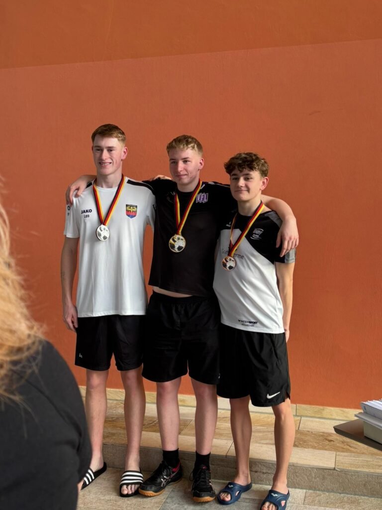 Silber ging auch an Ilja Menninghaus im Jg. 2013 über 1500F. Im Jg. 2010 über 1500F schafften Thilo Wellem, Mark Hartwich und Simon Brune das gleiche wie die 800F 2014 Jungen. Alle Drei holten die Medaillen nach Osnabrück.