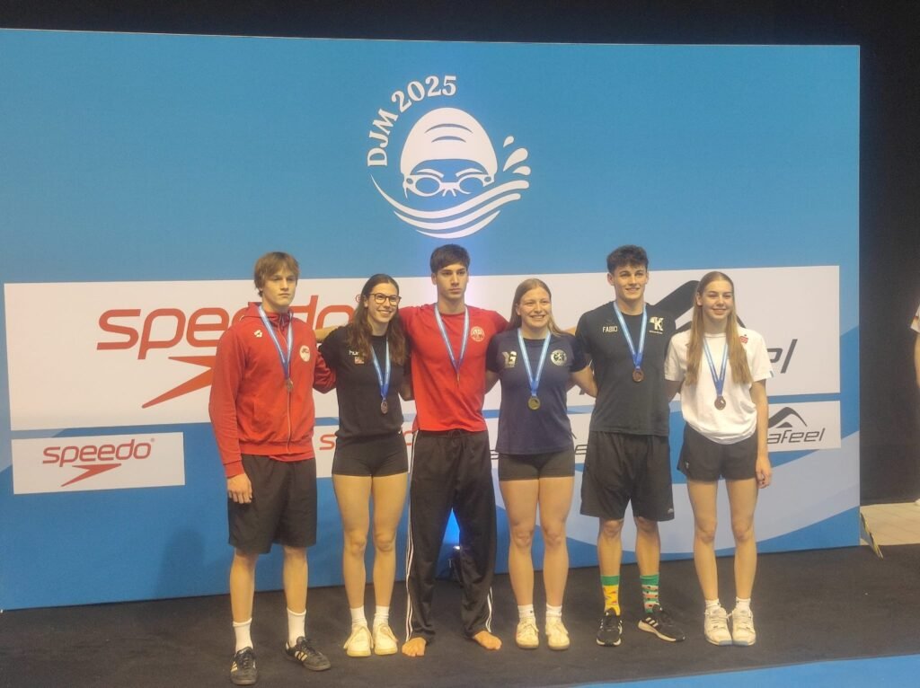 Ebenfalls Medaillen räumte Fabio Berendes ab. Auch er schwamm die DJM aus dem Training. Er kam vom JEM Vorbereitungslehrgang aus Heidelberg nach Berlin gereist.