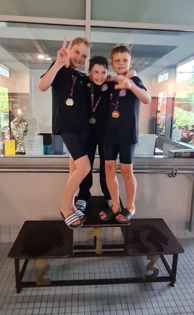 Aber für die Trainer*innen Dusan und Janina sind weniger die Anzahl der Medaillen als vielmehr die geschwommenen Zeiten interessant, da sie als Gradmesser für das aktuelle Standing der Schwimmer*innen fungieren und besonders für die weitere Trainingsplanung relevant sind. Außerdem bietet jeder Wettkampf die Chance, Qualifikationszeiten für die Bezirks- und Landesmeisterschaften zu erschwimmen. Insgesamt zeigten die Schwimmer*innen eine guten Saisonstart, so dass wir uns auf eine spannende Saison freuen können.