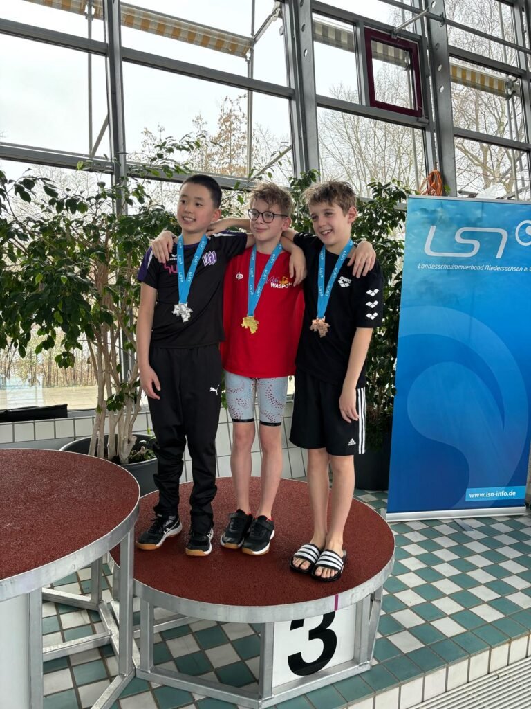 Am Sonntag wurde das WK-Programm umgekehrt. Und auch hier holten die VfLer einige Medaillen und einen Rekord. Julian Füllgraf verbesserte seine Bestzeit und damit den Deutschen Pararekord auch über 800F. Jan Daweke holte den Vize-Titel im Jg. bei den LM (800F) und gleichzeitig Bronze in der norddeutschen Wertung. Und auch Zhenduo Oliver Li belohnte sich mit der Silbermedaille im Jahrgang 2014 über 800F. Die bronzene Medaille holte er sich dann zum Abschluss über 400L bei der Landesjahrgangsmeisterschaft ab.
