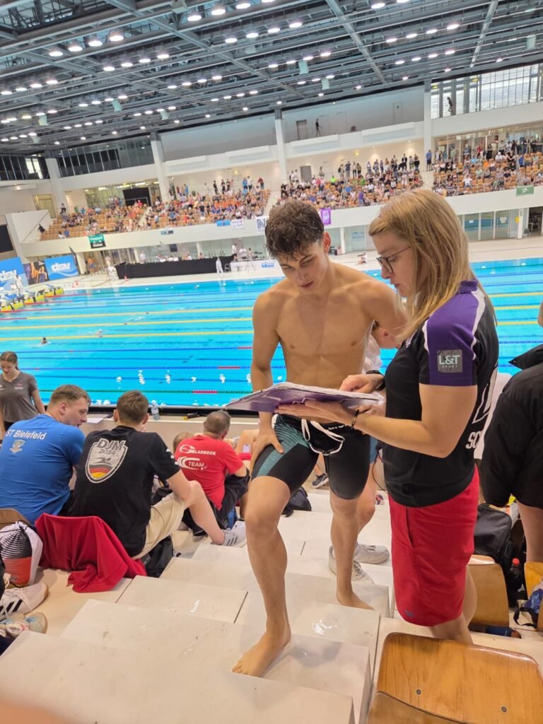 3x Gold zzgl. Stadt- und Bezirksrekord für Daniel Olenberg2x Bronze zzgl. Stadtrekord für Fabio Berendes10x Finalteilnahmen bei der DJM Die diesjährigen DJM standen für die VfL Osnabrück Schwimmer*innen unter verschiedenen