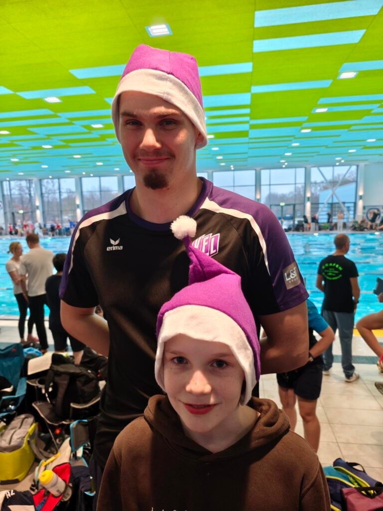 Unsere Cheftrainerin Dr. Janina Braun und Trainer Dušan Ercegović begleiteten das Team und unterstützten vor Ort. Ein amüsiertes Dankeschön gilt zudem Trainerin Anne Henning-Braun für die Bereitstellung der lila-weißen Nikolausmützen, großartig.